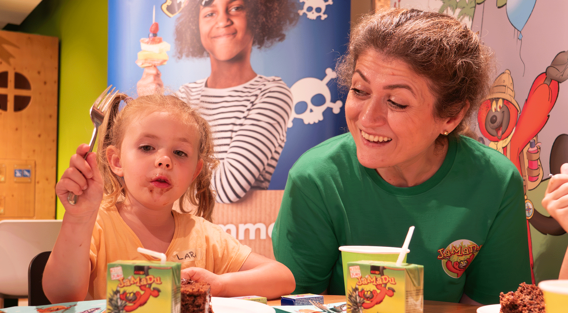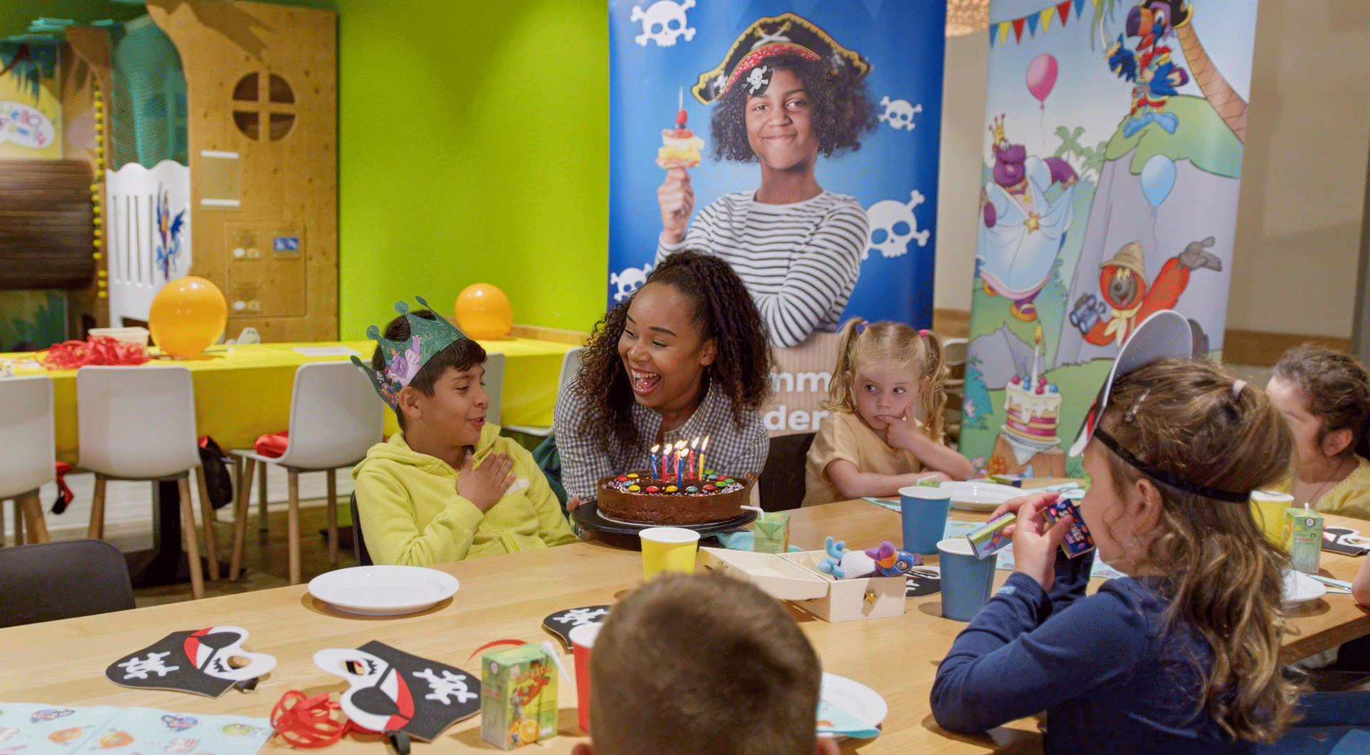 Per ricaricare le energie, serviamo una deliziosa torta e spiedini di frutta. Inoltre, con ogni festa prenotata, ogni famiglia riceve un regalo speciale dai nostri partner. Pronti a salpare per un’indimenticabile avventura piratesca!