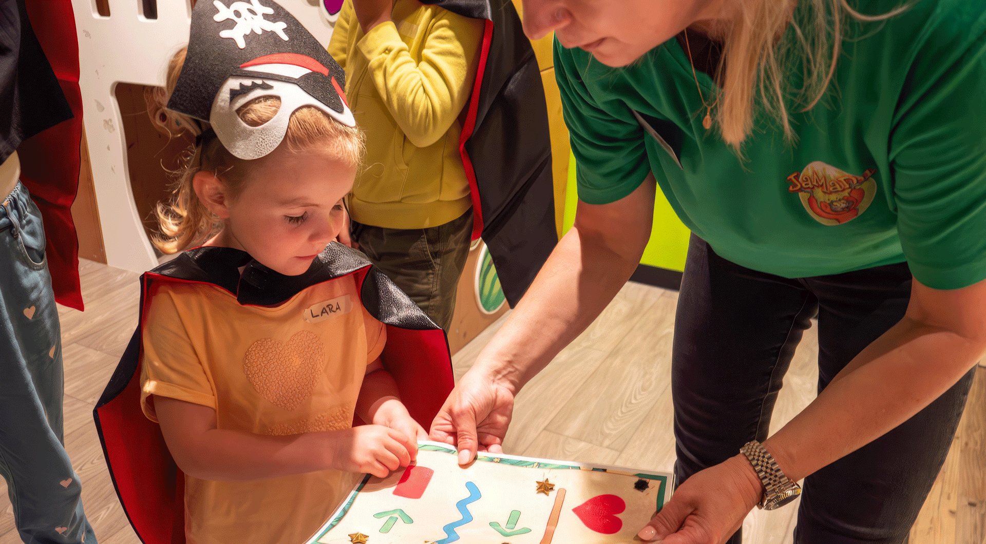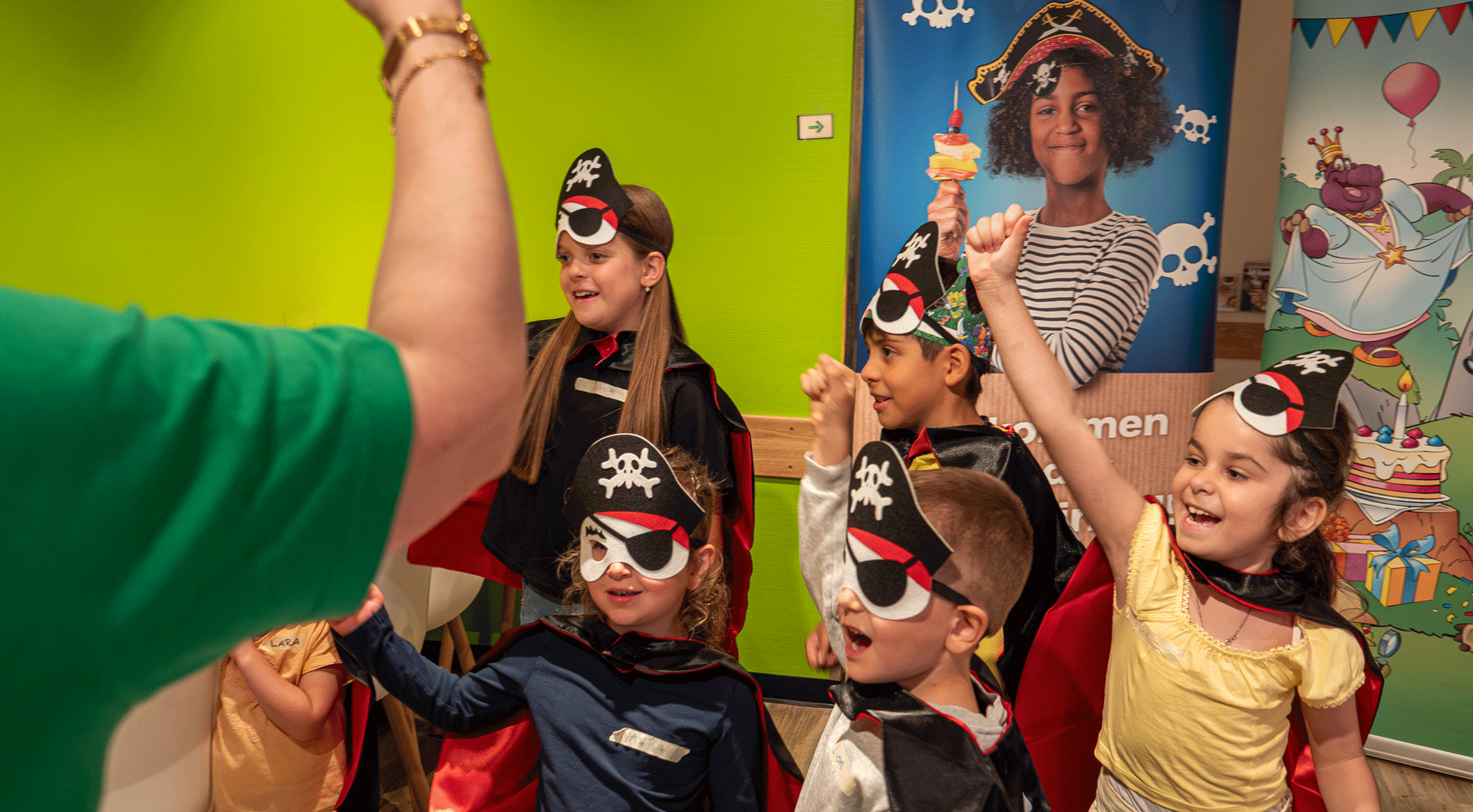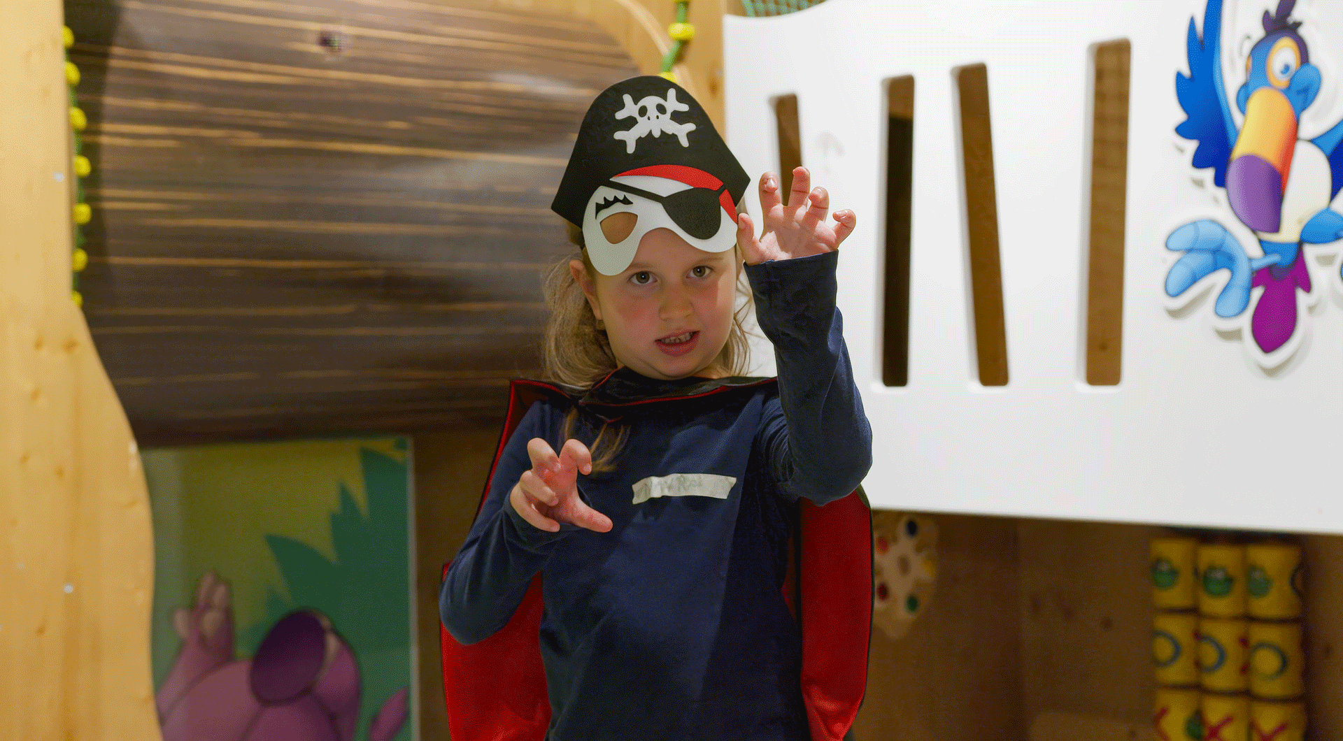 Yo ho ho e un grande ahoy! I giovani pirati salgono a bordo della nave di Tako per un’avventura entusiasmante. Con la bandiera nera issata, storie avvincenti, giochi divertenti e attività creative, tutti gli ospiti si trasformano in coraggiosə navigatorə. Capitano Barba Rossa, Lisa Dente d’Oro o Furbo il Temerario – quale nome di pirata sceglierà il vostro bambino?