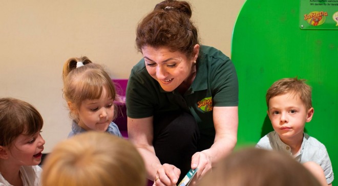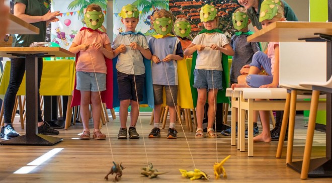 Oltre a storie avvincenti, lavoretti creativi e giochi emozionanti, serviamo una torta deliziosa. E come sorpresa speciale, ogni famiglia riceve un regalo esclusivo dai nostri partner. Un’avventura preistorica aspetta i giovani esplorator·e!