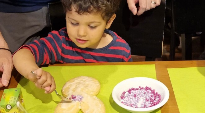 - Due animatori specializzati aiutano i bambini a decorare i dolci.